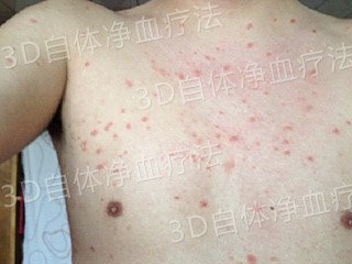 治疗概述:一个疗程后,患者的胸前一片光滑,症状完全消失,与健康皮肤无异。医师提醒患者在以后的日常生活中,避免经常使用刺激性的食物,要经常运动,增强自身的免疫能力。 |