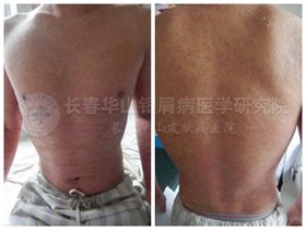发病过程: 今年21岁的洋洋是一名朝气蓬勃的大学生,成绩优异的洋洋一直是班上同学的榜样。去年冬天,一次洋洋在洗澡的时候,隐隐感觉肘部有点发痒,仔细一看,发现手肘处长了一些小红点,当时他并没有太在意,之后的时间里,洋洋身上的其他部位也慢慢出现了同样的丘疹,有明显的瘙痒症状,上面还有一层白色鳞屑。妈妈得知后随即带他去了附近的医院,医生诊断为银屑病,接受治疗一阵子后,病情好转了一些。 今年五月,原本已经消退的皮损又再次袭来,病症蔓延很快,全身大面积片状脓疱样皮损,病症严重。一家人万分着急,只希望能尽早治好洋洋的病,因为孩子正在长身体的时候,不能因为银屑病而影响孩子的健康成长。在一位亲戚的介绍下,得知我院在治疗银屑病方面颇具影响力,便带着洋洋来到我院。 治疗概述: 主治医生接诊时,洋洋全身布满丘疹斑块,前胸,腹部,背部,臀部,腹股沟及下肢有较多片状皮损伴鳞屑,并伴有新出红色点滴状脓疱型皮损。随后,医师结合系列皮肤检测仪器为他做了详细的检查,结合银屑病三维皮肤CT成像,观测皮损病变部位皮下组织状况。检查结果显示,患者身体元素锌4.37(明显下降),微循环中度异常,病情诊断为脓疱型银屑病(进行期)。 综合了数据,主治医生详细分析了洋洋的病情,为他制定了康复方案,针对银屑病的根源病因出发,对银屑病进行深度治疗,通过全方位的检测、诊断,精确锁定病因,展开立体治疗,全方位修复。中西结合,由内而外,达到完美治疗的效果。 治疗15天后,洋洋全身的皮损明显好转,瘙痒症状减轻很多,原先严重溃破的皮损创面也修复愈合。继续治疗半个月,洋洋身上的皮损已经几乎完全消退,仅有少部分皮损相对集中的部位还有些残余皮损,并且原先皮损患处不再有任何瘙痒。主治医生根据洋洋的康复状况又给他调整了康复方案的一些细节,接下来的一周是巩固治疗,主要是对治疗效果的一个巩固。 康复后的洋洋重新回到了他喜欢的校园,恢复到了从前的活力与朝气。 |