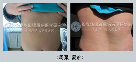 23岁对于周某来说本是意气风发的年纪,但对于周某来说却经历太多,他患牛皮癣已经长达10余年之久,病发部位主要集中在肚子及后背,呈现小红疙瘩及白色鳞屑,被确诊为牛皮癣后,父母多处求医未果,各种治疗是症状好了没多久,又再次复发。