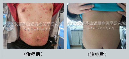 病史:患者2003年确诊银屑病,曾用采用药物治疗,无效, 经人推荐,来到我院进行治疗。 |